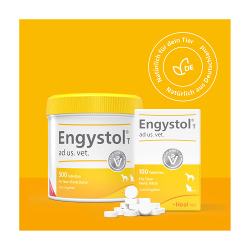 Engystol ad us. vet., Tabletten. Anwendungsgebiete: Registriertes homöopathisches Arzneimittel, daher ohne Angabe einer therapeutischen Indikation. Wartezeit: Entfällt.