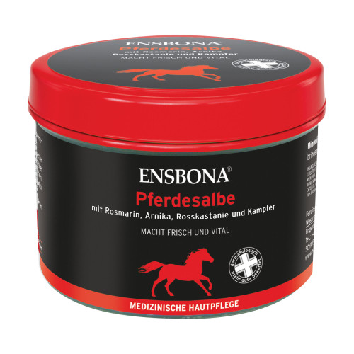 ENSBONA Pferdesalbe mit Kampfer, Rosmarin-, Arnika- und Rosskastanienextrakt ist eine Wohltat nach körperlicher Anstrengung und Ermüdung. Die kühlende Hautpflege macht frisch & vital in zwei Phasen.