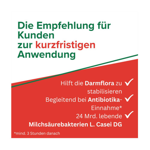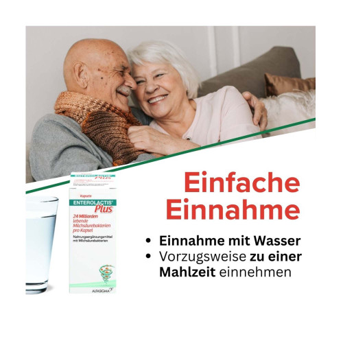 Enterolactis Plus enthält L. casei DG (Lacticaseibacillus paracasei DG I1572, DSM 34154) ein Milchsäurebakterium, das natürlicherweise im menschlichen Darm vorkommt. Enterolactis Plus enthält 24 Milliarden lebende Milchsäurebakterien pro Kapsel. Durch seine spezielle Schutzhülle ist L. Casei DG in der Lage, das saure Magenmillieu zu passieren, während der Magen-Darm Passage lebensfähig zu bleiben und sich im Darm anzusieldeln.