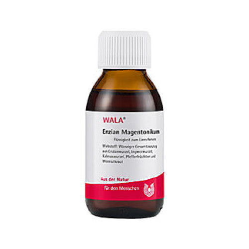Enzian Magentonikum. Wirkstoff: Wässriger Gesamtauszug aus Enzianwurzel, Ingwerwurzel, Kalmuswurzel, Pfefferfrüchten und Wermutkraut. Anwendungsgebiete: Anwendungsgebiete gemäß der anthroposophischen Menschen- und Naturerkenntnis. Dazu gehören: Anregung der peptischen Verdauungstätigkeit durch Harmonisierung der motorischen und sekretorischen Funktionsabläufe, z.B. Appetitlosigkeit, Völlegefühl, Übelkeit.