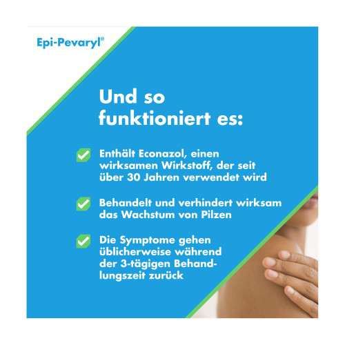 Epi-Pevaryl P.v. 1 % Lösung. Wirkstoff: Econazol. Anwendungsgebiete: Zur äußerlichen Behandlung von Pilzerkrankungen der Haut und Kopfhaut (Antimykotikum). Warnhinweis: Enthält Benzylalkohol.