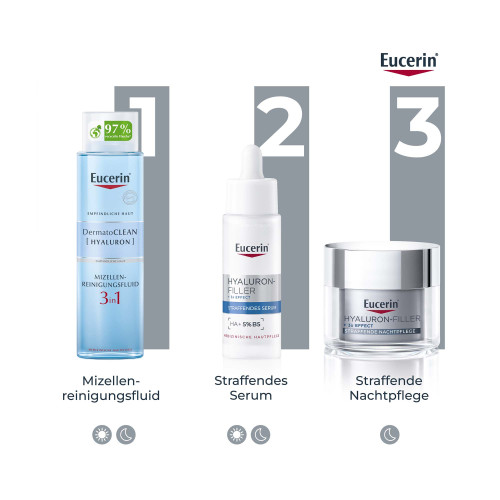Für ein besonders straffes Hautbild empfehlen wir vorab das Eucerin® Hyaluron-Filler + 3x Effect Straffendes Serum.