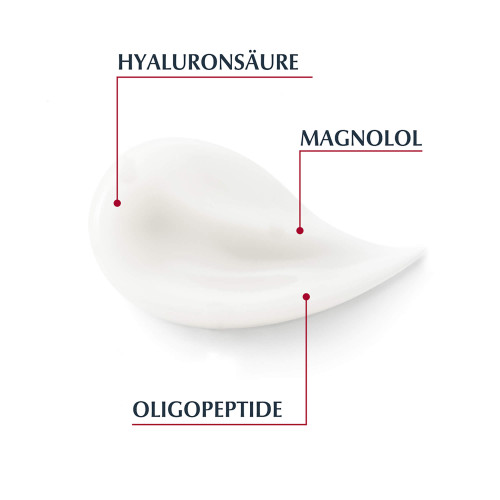 Zusätzlich sorgt die Kombination der Inhaltsstoffe für einen hautstraffenden Lifting-Effekt: Natürlich gewonnenes Magnolol wirkt sich positiv auf die Vermehrung volumengebender Hautzellen aus, Oligopeptide regen das hauteigene Kollagennetzwerk an* und Hyaluronsäure spendet intensive Feuchtigkeit und sorgt für verminderte Faltentiefe. Die Anti Falten Creme sorgt für ein glattes und strahlendes Hautbild.
