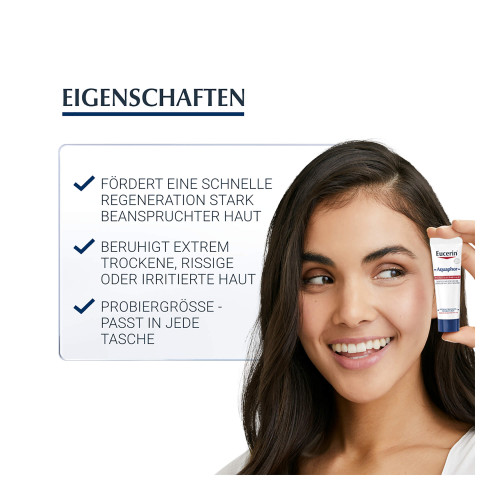 Neben den regenerationsfördernden Eigenschaften pflegt und beruhigt die Fettsalbe stark beanspruchte Haut. Die Pflegecreme empfiehlt sich außerdem als Hautpflege bei Xerosis sowie bei strapazierter, trockener Haut durch z.B. häufiges Händewaschen im Beruf. Eucerin Aquaphor ist sanft zu empfindlicher Babyhaut, z.B. bei Kälte und im Windelbereich. Da sie eine ausgewählte Anzahl von nur sieben Inhaltsstoffen enthält, hat sie ein sehr geringes Irritationspotential und wird sehr gut vertragen.