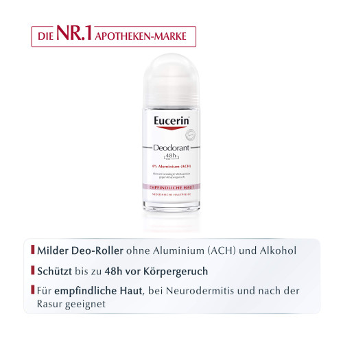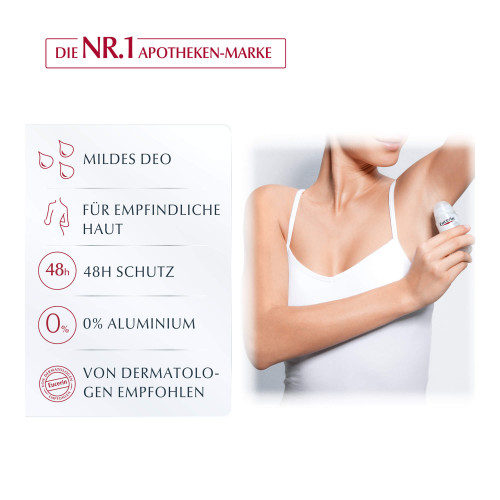 Das Eucerin Deo 24 h Deodorant für empfindliche Haut ist frei von potenziellen Reizstoffen wie Parfüm, Alkohol, Farb- oder Konservierungsstoffen. Da es den natürlichen pH-Wert wiederherstellt, ist es zudem auch hautfreundlich.