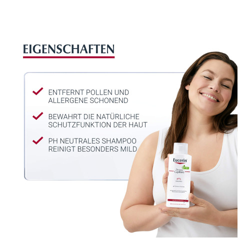 Das Eucerin DermoCapillaire pH5 Shampoo reinigt empfindliche Kopfhaut besonders mild und schützt vor Trockenheit und Irritationen. Das Shampoo bewahrt den natürlichen pH-Wert, stärkt die Kopfhaut und verleiht dem Haar einen gesunden Glanz.
