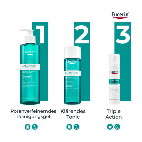 - Für ein reines Hautbild können weitere Produkte aus der Eucerin® DermoPure Clinical Serie ergänzt werden.