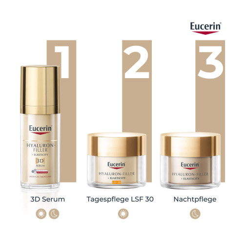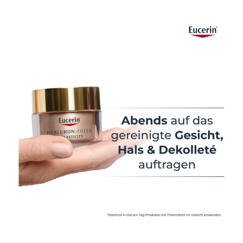 Die besten Ergebnisse erzielen Sie in Kombination mit anderen Produkten aus der Eucerin Hyaluron-Filler + Elasticity Reihe.