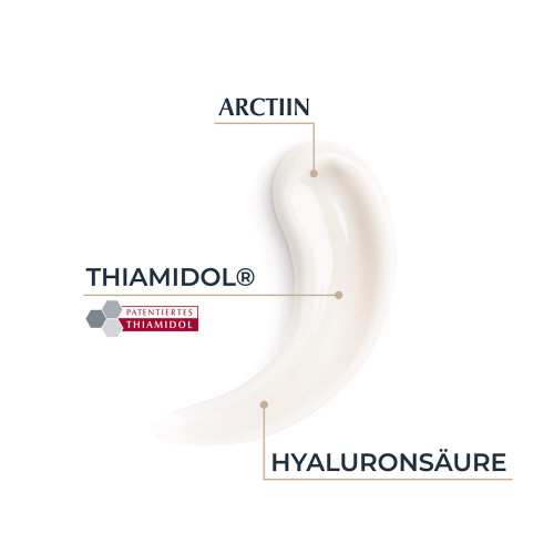 Die einzigartige, dreifach wirkende Formel bietet mehrere Anti-Aging-Vorteile, um fortgeschrittene Zeichen der Hautalterung zu mildern: Der einzigartige Inhaltsstoff Arctiin von Eucerin stimuliert die Kollagenproduktion und verbessert die Elastizität der Haut. Das patentierte Thiamidol mildert Altersflecken sichtbar und lässt die Haut ebenmäßiger und jünger wirken. Eucerins innovative Mischung aus hoch- und niedermolekularer Hyaluronsäure spendet intensive Feuchtigkeit, die die Haut regeneriert und glättet.
