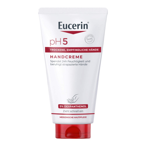 Das einzigartige Eucerin pH Balance System mit dem pH5 Citratpuffer stellt den natürlichen pH-Wert der Haut wieder her. Gleichzeitig hilft 5% Dexpanthenol (Provitamin B5) die Regeneration der Haut zu stimulieren und deren Widerstandskraft zu bewahren. Die Eucerin pH5 Handcreme hilft, den Feuchtigkeitsverlust von häufigem Händewaschen und Handdesinfektion zu reduzieren und die Haut vor Reizungen zu schützen.