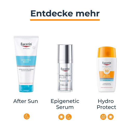 Dank des Hydro-Technology Komplexes mit Hyaluronsäure spendet die Eucerin Sonnencreme fürs Gesicht unmittelbar nach dem Auftragen Feuchtigkeit und sorgt für ein erfrischtes Hautgefühl. Die AOX SHIELD TECHNOLOGY in der Tagescreme bietet sehr hohen UVB- und UVA-Schutz und schützt die Haut auch vor sonnenbedingten Hautschäden sowie den schädlichen Auswirkungen von Blue Light, die vorzeitige Hautalterung auslösen können. Formuliert mit Licochalcone A und Glycyrrhetinsäure, bietet das Feuchtigkeitsfluid mit ultraleichter, nicht fettender Textur starken antioxidativen Schutz und unterstützt die DNA-Reparatur der Haut.