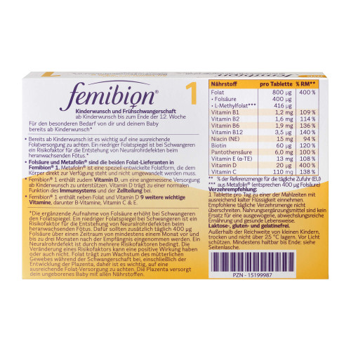 Femibion 1 Kinderwunsch + Frühschwangerschaft ohne Jod 60 St