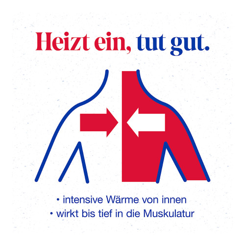 Nicoboxil: Der Wirkstoff ist gefäßerweiternd. Dadurch wird die Haut stärker durchblutet und intensiv erwärmt. Laut Angaben der Hersteller nimmt auch die Durchblutung der Muskeln zu. Der Arzneistoff wirkt dadurch spannungslösend und schmerzstillend.