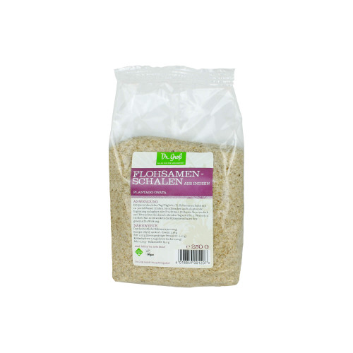 2 Teelöffel Dr. Groß Flohsamenschalen zu ca. 300 ml Flüssigkeit geben, gut umrühren und trinken. Als Dessert: 2 Teelöffel zu Joghurt oder Fruchtmus geben, umrühren und kurz quellen lassen. Zusätzlich über den Tag verteilt viel trinken.