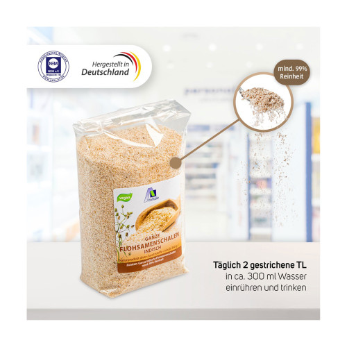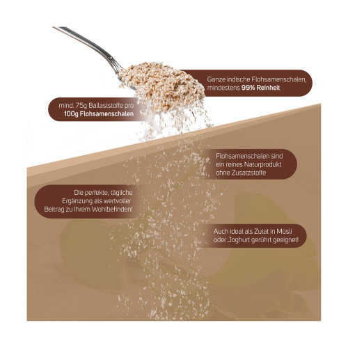 Avitale Flohsamenschalen sind reich an schleimbildenden Ballaststoffen: Pro 100 g Flohsamenschalen sind mindestens 75 g Ballaststoffe enthalten. Flohsamenschalen sind ein reines Naturprodukt ohne Zusatzstoffe und für eine vegetarische und vegane Ernährung geeignet. Die perfekte, tägliche Ergänzung als wertvoller Beitrag zu Ihrem Wohlbefinden!