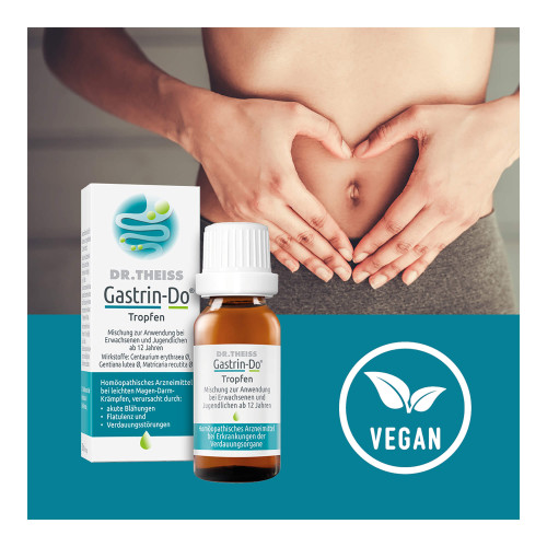 Gastrin-Do Tropfen, Mischung. Anwendungsgebiete: Die Anwendungsgebiete leiten sich von den homöopathischen Arzneimittelbildern ab. Dazu gehören: gastrointestinale Beschwerden in Form von leichten Magen-Darm-Krämpfen, die durch akute Blähungen, Flatulenz und Dyspepsie (Verdauungsstörungen) verursacht sind. Warnhinweis: Enthält 23 mg Alkohol (Ethanol) pro Tropfen. Dauern die Beschwerden über einen längeren Zeitraum an, sollte ein Arzt zu Rate gezogen werden, um eine Grunderkrankung oder eine Nahrungsmittelunverträglichkeit abzuklären. Es ist zu beachten, dass bei Erbrechen, Schwarzfärbung des Stuhls, Blutbeimengungen im Stuhlgang, heftigen krampfartigen Bauchschmerzen sowie bei anhaltenden, unklaren oder neu auftretenden Beschwerden ein Arzt aufgesucht werden soll.