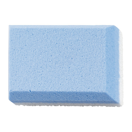 Grob- und feinporiger Mineral-Hornhaut-Schwamm. Die gröbere, weiße Seite zur Entfernung von hartnäckiger Hornhaut, Schwielen und Hühneraugen an den Füßen. Die feinere, blaue Seite für Hände, Knöchel, Knie etc. Abgestorbene Hautzellen werden entfernt, die Haut wird zart und weich.