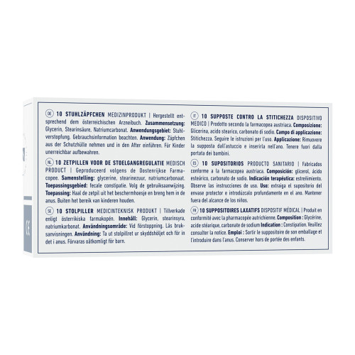 Das Zäpfchen wird sanft in den After eingeführt. Falls nicht anders verordnet am besten morgens kurz vor dem Aufstehen einführen. Nach Einführen des Zäpfchens sollte man die Entleerung etwas hinhalten, damit eine ausreichende Erweichung der verhärteten Stuhlmassen stattfinden kann.