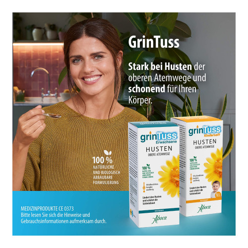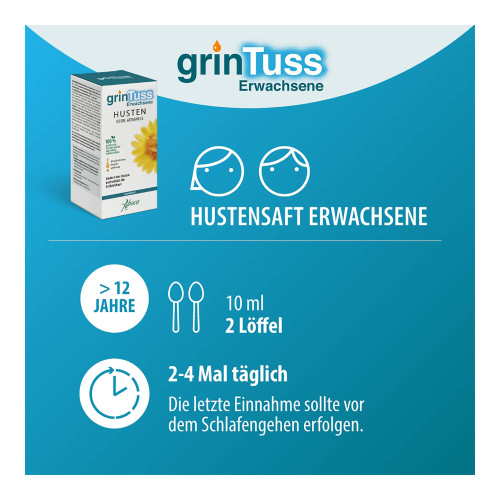 Grintuss Erwachsene Hustensaft ist für die Behandlung von Husten geeignet, welcher auf die Reizung der Schleimhaut in den oberen Atemwegen zurückzuführen ist. Geeignet für Erwachsene und Jugendliche ab 12 Jahren.