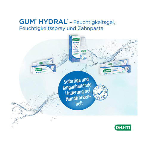 Sunstar hat die GUM HYDRAL Linie entwickelt, um Ihnen eine sofortige und langanhaltende Linderung bei Mundtrockenheit zu bieten und um Ihnen dabei zu helfen, mit den damit einhergehenden Problemen der Mundgesundheit umzugehen. Mundtrockenheit kann auftreten, wenn die Speichelproduktion abnimmt. Da Speichel als natürliche Barriere fungiert, die Bakterien davon abhält in unseren Körper zu gelangen, spielt er eine wichtige Rolle beim Schutz unserer Allgemeingesundheit und unseres Wohlbefindens. Infolgedessen kann Mundtrockenheit zu Karies, Mundgeruch, Zahnbelag, Aphthen, Zahnfleischrückgang oder sogar zu Zahnverlust führen. Das GUM HYDRAL Feuchtigkeitsspray ist kompakt und einfach zu bedienen und somit ideal, wenn Sie bei der Arbeit oder unterwegs sind.