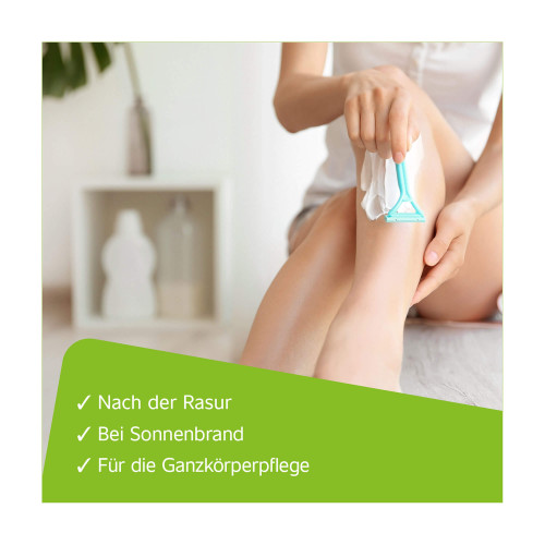 - als Pflege der gestressten Haut nach der Rasur (z. B. von Gesicht oder Beinen),