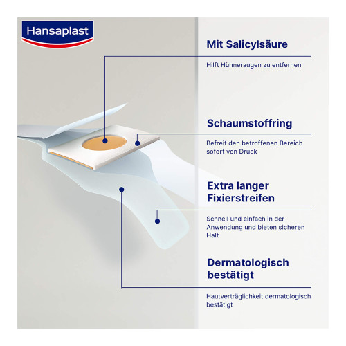 - Hilft Hühneraugen mithilfe von Salicylsäure zu entfernen