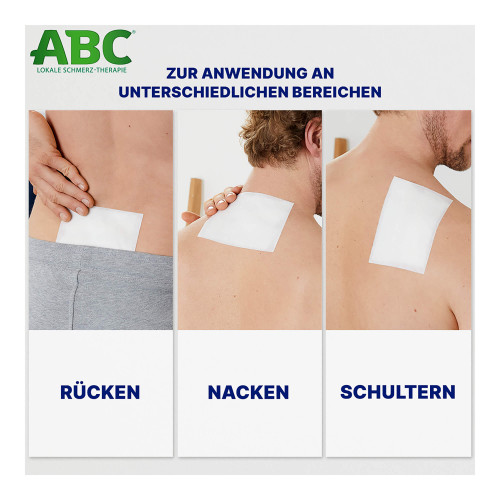 ABC Lokale Schmerz-Therapie Wärme-Pflaster mit Sensitive-Vlies ist ein Arzneimittel zur äußerlichen symptomatischen Behandlung von Schmerzen der Muskeln im Bereich der Lendenwirbelsäule und der Nackenmuskulatur.