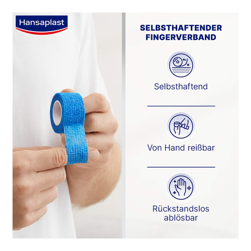 Der selbsthaftende Fingerverband von Hansaplast ist ein elastischer Verband zur Fixierung von Wundauflagen. Dieser spezielle Fingerverband ist extra flexibel und angenehm zu tragen.