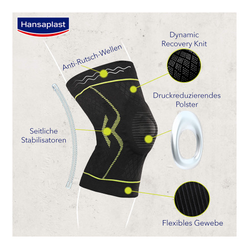 Die Hansaplast Performance Knie-Bandage bietet Stabilität, Schutz und Kompression für schmerzende, schwache, oder verletzte Knie. Sie bietet einen moderaten Stützgrad während der Bewegung und anderen Aktivitäten.