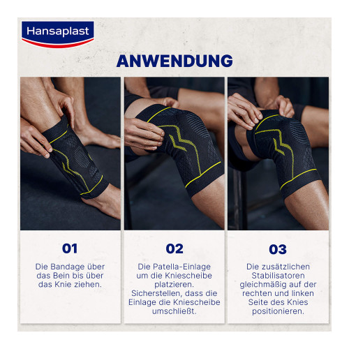 Die Hansaplast Performance Knie-Bandage wurde von Physiotherapeutinnen und -therapeuten sowie Sportärztinnen und -ärzten intensiv getestet. Mit der Hilfe dieser Fachexpertise optimieren wir stetig unsere Produkte und damit den Nutzen für dich.