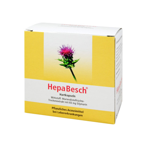 HepaBesch Hartkapseln. Wirkstoff: Mariendistelfrüchte-Trockenextrakt mit 83 mg Silymarin. Anwendungsgebiete: bei chronisch-entzündlichen Lebererkrankungen, bei Leberzirrhose und bei toxischen (durch Lebergifte verursachten) Leberschäden.