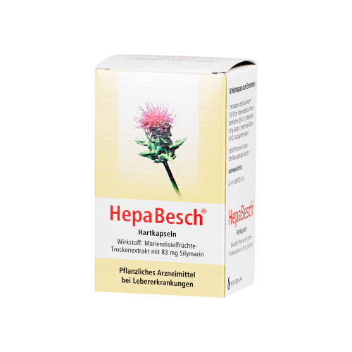 HepaBesch Hartkapseln. Wirkstoff: Mariendistelfrüchte-Trockenextrakt mit 83 mg Silymarin. Anwendungsgebiete: zur unterstützenden Behandlung angewendet bei chronisch-entzündlichen Lebererkrankungen, bei Leberzirrhose und bei toxischen (durch Lebergifte verursachten) Leberschäden.