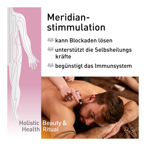 Der Energyliner ist der perfekte Massagestift für die Meridiane. Meridiane sind die Leitbahnen, die den ganzen Körper durchziehen. Die traditionelle chinesische Medizin lehrt, dass sich darin die Lebensjahre (=Qi) verteilt. Auf den Meridianen liegen die klassischen Akupressur-Punkte.