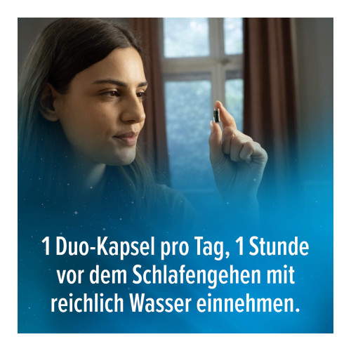 1 Duo-Kapsel pro Tag, 1 Stunde vor dem Schlafengehen mit reichlich Wasser verzehren.