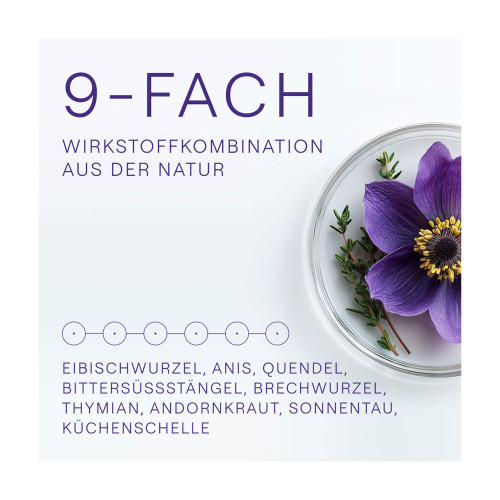 Wirkstoffe: 5 g wässriger Auszug aus 0,6 g Althaeae radix / 30 g wässriges Decoctum aus: 0,15 g Solanum dulcamara, Stipites sicc.; 0,35 g Marrubium vulgare, Herba sicc.; 0,5 g Anisi fructus; 0,35 g Serpylli herba; 2,85 g Thymi herba / Drosera Dil. D2 [D2 mit Ethanol 30% (m/m)] 0,1 g / Extractum Malti 5 g / Ipecacuanha, ethanol. Decoctum ∅ (= D1) 0,1 g / Pulsatilla vulgaris Dil. D3 [D2 mit Ethanol 43% (m/m), D3 mit Ethanol 30 % (m/m)] 0,01 g.
