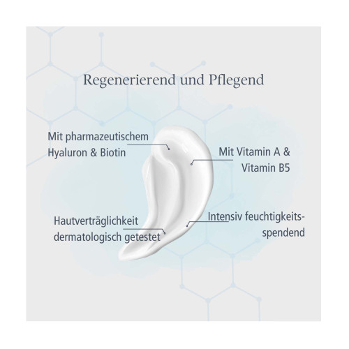 - Mit pharmazeutischem Hyaluron, Biotin, Vitamin A und Provitamin B5.