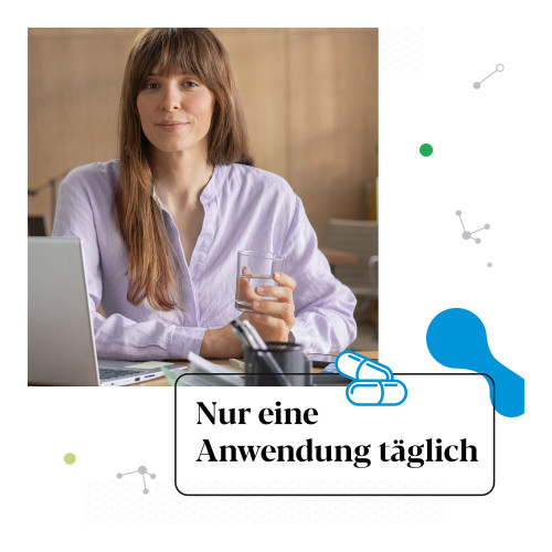 Nehmen Sie zeitgleich 1 grüne Kapsel mit Melisse + Vitamin B2 und 1 weiße Kapsel mit Lactobacillus acidophilus LA-14 ein.