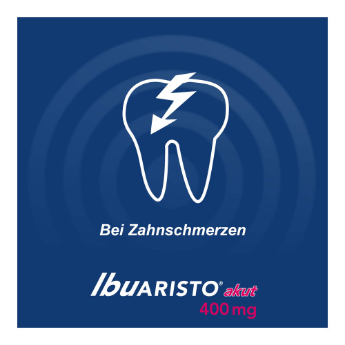 IbuAristo® akut 400 mg Filmtabletten. Wirkstoff: Ibuprofen. Anwendungsgebiete: Erwachsene und Jugendliche 40 kg (ab 12 Jahre): Zur kurzzeitigen symptomatischen Behandlung von leichten bis mäßig starken Schmerzen und/oder Fieber. Warnhinweise: Enthält Lactose. Packungsbeilage beachten. Bei Schmerzen oder Fieber ohne ärztlichen Rat nicht länger anwenden als in der Packungsbeilage vorgegeben.