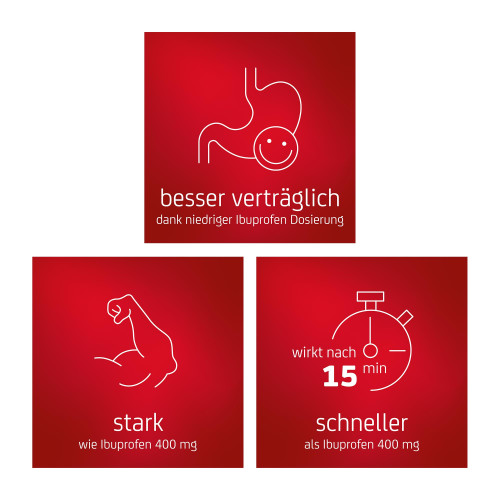 Ibuprofen: Der Wirkstoff gehört zu einer Gruppe von Stoffen, die sowohl gegen Schmerzen, als auch gegen Entzündungen wirken und Fieber senken können. Alle drei Wirkungen beruhen vor allem auf der Hemmung eines körpereigenen Stoffes, genannt Prostaglandin. Dieser Stoff muss als Botenstoff vorhanden sein, damit Schmerz empfunden, Entzündungsreaktionen gestartet oder die Körpertemperatur angehoben werden kann.