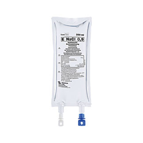 Isotonische Kochsalzlösung Fresenius, Infusionslösung. Anwendungsgebiete: Plasmaisotoner Flüssigkeitsersatz bei hypotoner und isotoner Dehydratation, kurzfristiger intravasaler Volumenersatz. Als Trägerlösung für Elektrolytkonzentrate und kompatible Medikamente. Zum Befeuchten von Verbänden.