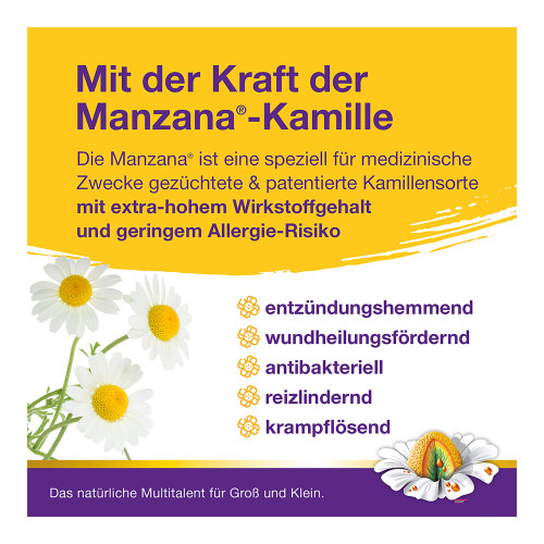 Zur Anwendung dieses Arzneimittels bei Kindern und Säuglingen liegen keine ausreichenden Untersuchungen vor, daher darf Kamillosan Konzentrat bei Kindern unter 6 Jahren nicht angewendet werden.