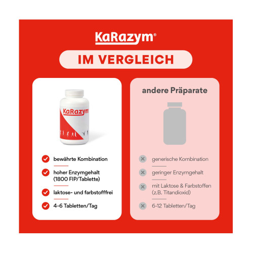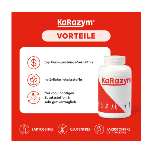 In der Herstellung von KaRazym® werden Enzyme mit hoher Aktivität verwendet, die Aktivität pro Tablette ist für die Bewertung der Qualität ausschlaggebend.