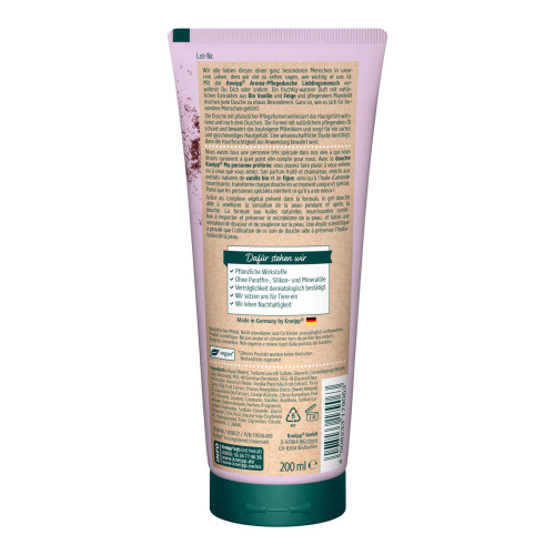 Wir alle haben diesen einen ganz besonderen Menschen in unserem Leben, dem wir viel zu selten sagen, wie wichtig er uns ist. Mit der Kneipp Aroma-Pflegedusche Lieblingsmensch verwöhnst Du Dich oder andere. Ein fruchtig-warmer Duft mit natürlichen Extrakten aus Vanille und Bio Feige und pflegendem Mandelöl machen jede Dusche zu etwas Besonderem. Ganz so, wie es sich für besondere Menschen gehört!