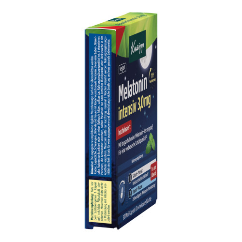 1 Kneipp Melatonin intensiv enthält Melotime™, das 2 mg des Inhaltsstoffs Melatonin zeitverzögert freisetzt. Damit ermöglicht Kneipp Melatonin intensiv eine kontinuierliche Freisetzung von 2 mg Melatonin bis zu 7 Stunden. Als Sofort-Effekt verkürzt 1 mg Melatonin, welches sofort freigesetzt wird, die Einschlafzeit.