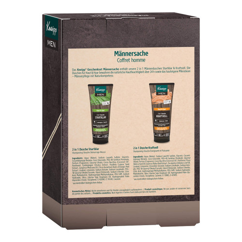 Das Kneipp Geschenkset Männersache enthält unsere 2 in 1 Männerduschen Startklar & Kraftvoll. Die Duschen für Haut & Haar bewahren die natürliche Hautfeuchtigkeit über 24 h sowie das hauteigene Mikrobiom –Männerpflege mit Naturkompetenz.