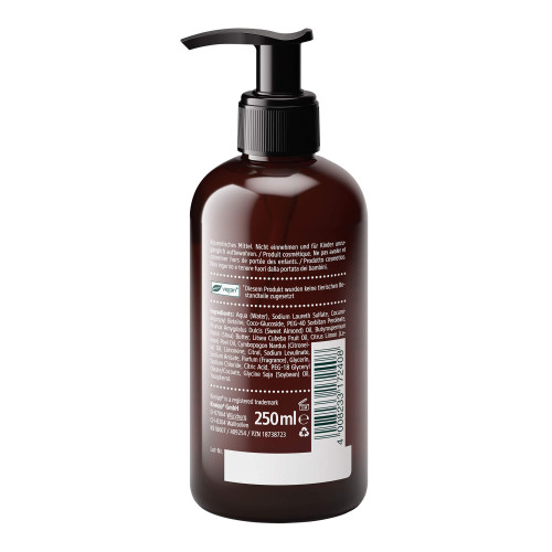 Aqua (Water), Sodium Laureth Sulfate, Cocamidopropyl Betaine, Coco-Glucoside, PEG-40 Sorbitan Peroleate, Prunus Amygdalus Dulcis (Sweet Almond) Oil, Butyrospermum Parkii (Shea) Butter, Litsea Cubeba Fruit Oil, Citrus Limon (Lemon) Peel Oil, Cymbopogon Nardus (Citronella) Oil, Limonene, Citral, Sodium Levulinate, Sodium Anisate, Parfum (Fragrance), Glycerin, Sodium Chloride, Citric Acid, PEG-18 Glyceryl Oleate/Cocoate, Glycine Soja (Soybean) Oil, Tocopherol.