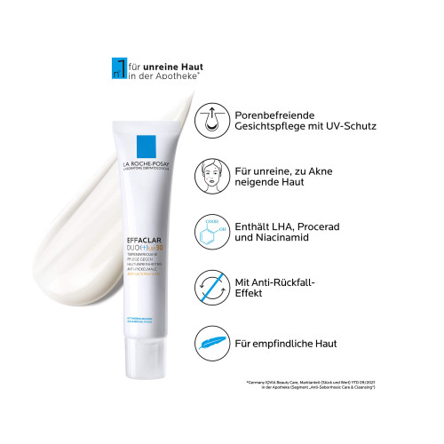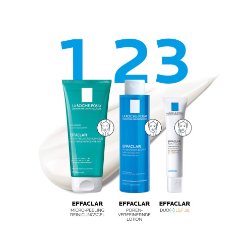 EFFACLAR DUO (+) LSF 30 morgens im zuvor gereinigten Gesicht großzügig verteilen. Die Tagespflege eignet sich als Grundlage für das Make-up.