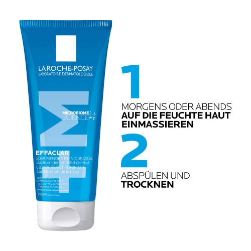 La Roche Posay EFFACLAR Schäumendes Reinigungsgel täglich eine kleine Menge am Morgen und/oder am Abend anwenden. Die Haut mit lauwarmem Wasser anfeuchten, um die Poren zu öffnen und zu reinigen. Sanfte, kreisende Bewegung auf Stirn, Nase, Kinn und Hals. Auch für den Körper geeignet.