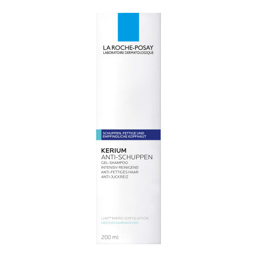 KERIUM Anti-Schuppen Shampoo-Gel mit hautberuhigendem Thermalwasser aus La Roche-Posay garantiert präzise und rasche Beseitigung von Schuppen dank mikro-exfolierender LHA Wirkung. Stellt das physiologische Gleichgewicht der Kopfhaut dank eines klärenden Komplexes, der der Neubildung von Schuppen vorbeugt, her. Enthält einen Anti-Talg-Komplex mit Zink-PCA.