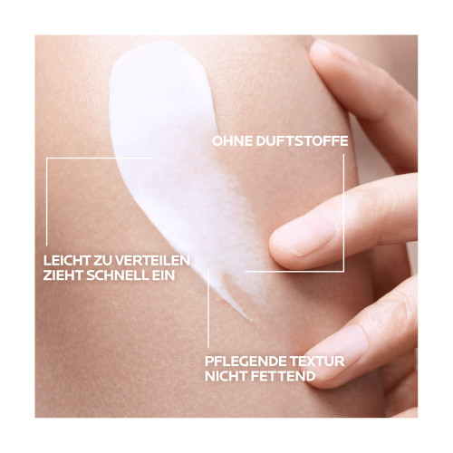 Die rückfettende Feuchtigkeitspflege zieht schnell in die Haut ein und mildert sofort die Anzeichen von Juckreiz, Trockenheit sowie Spannungsgefühlen.